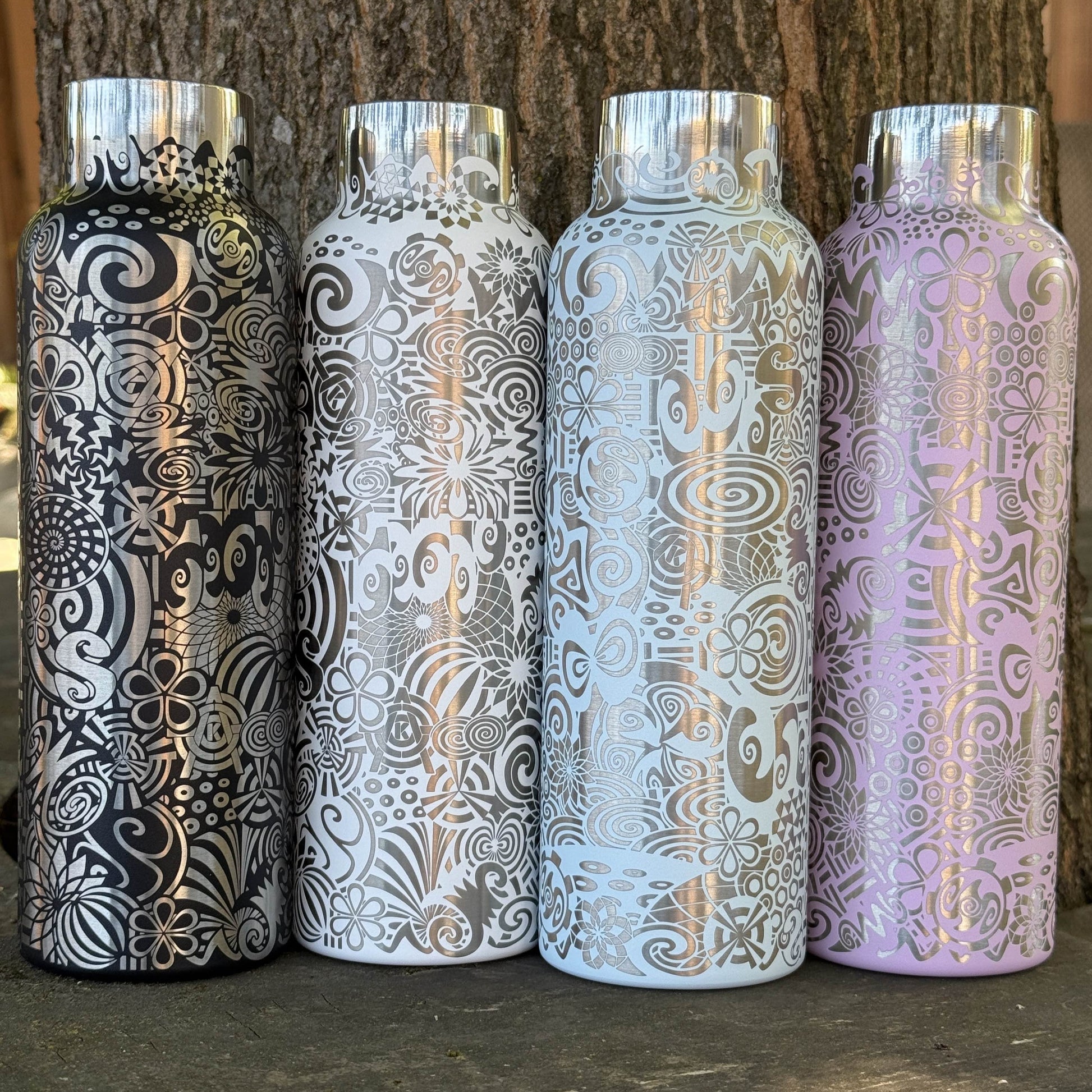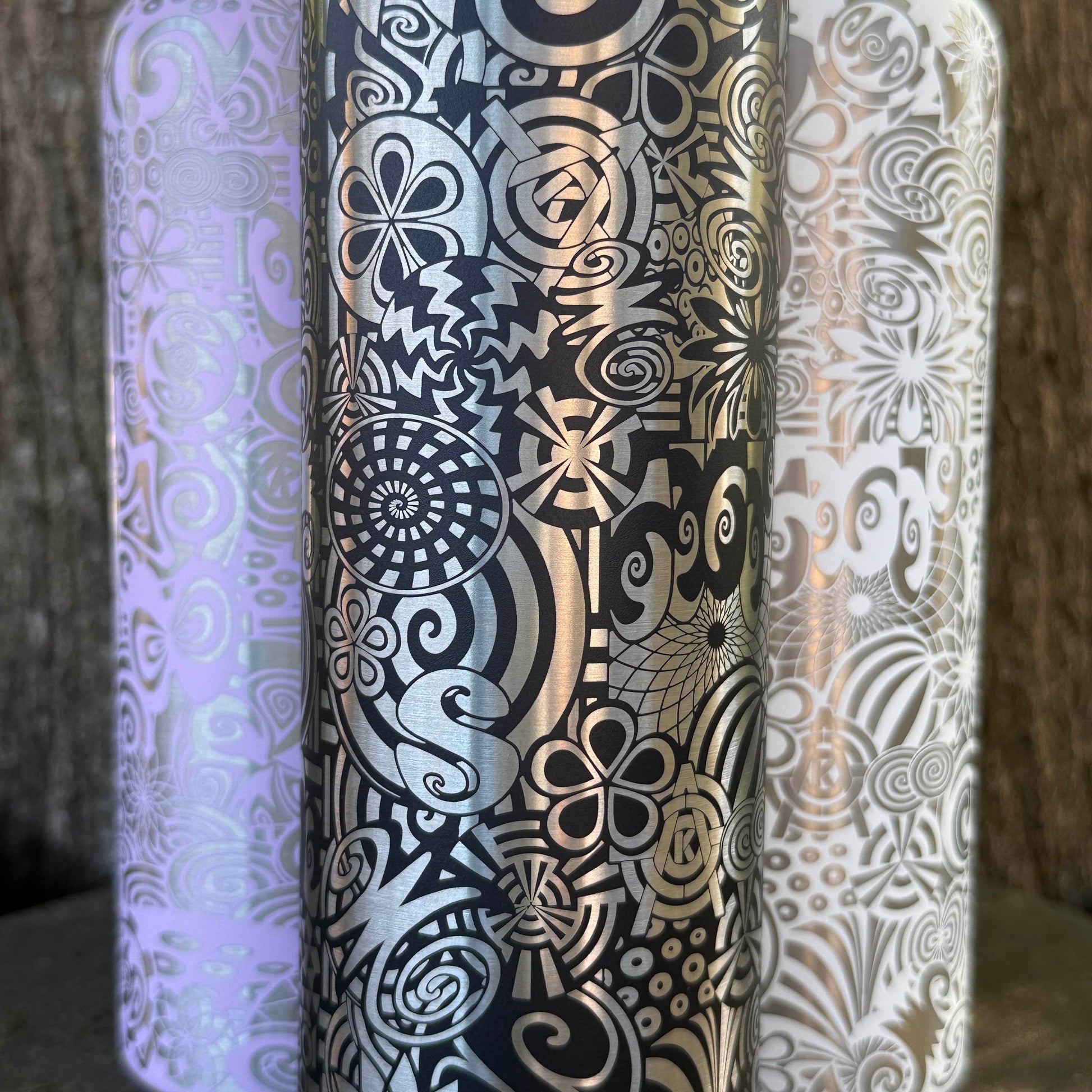 Made of Stainless Steel, our Double-Wall Vacuum Insulated water bottles are wrapped all the way around—and top to bottom—with the Krunk Canvas design, engraved fully in-house!