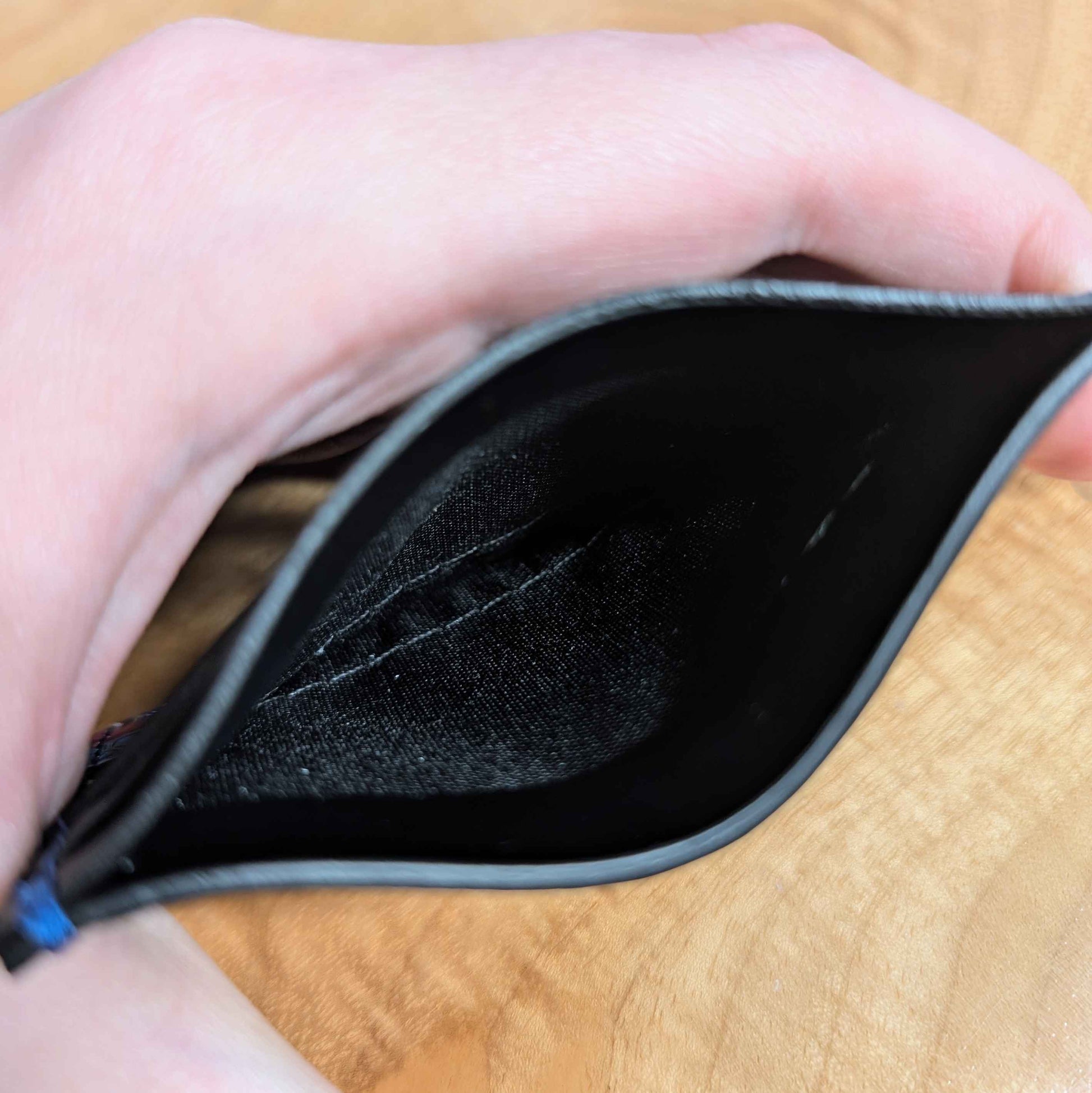 These crisp, firm card holders are made from genuine Nappa leather and are printed with opposing art on both sides. Lined with a waterproof fabric, 2 pockets on each side meet in the middle into an extra-deep center pocket, and can hold up to 5 cards. Pockets are nice and tight and give a solid sense of security to affirm your cards won't ever slip.