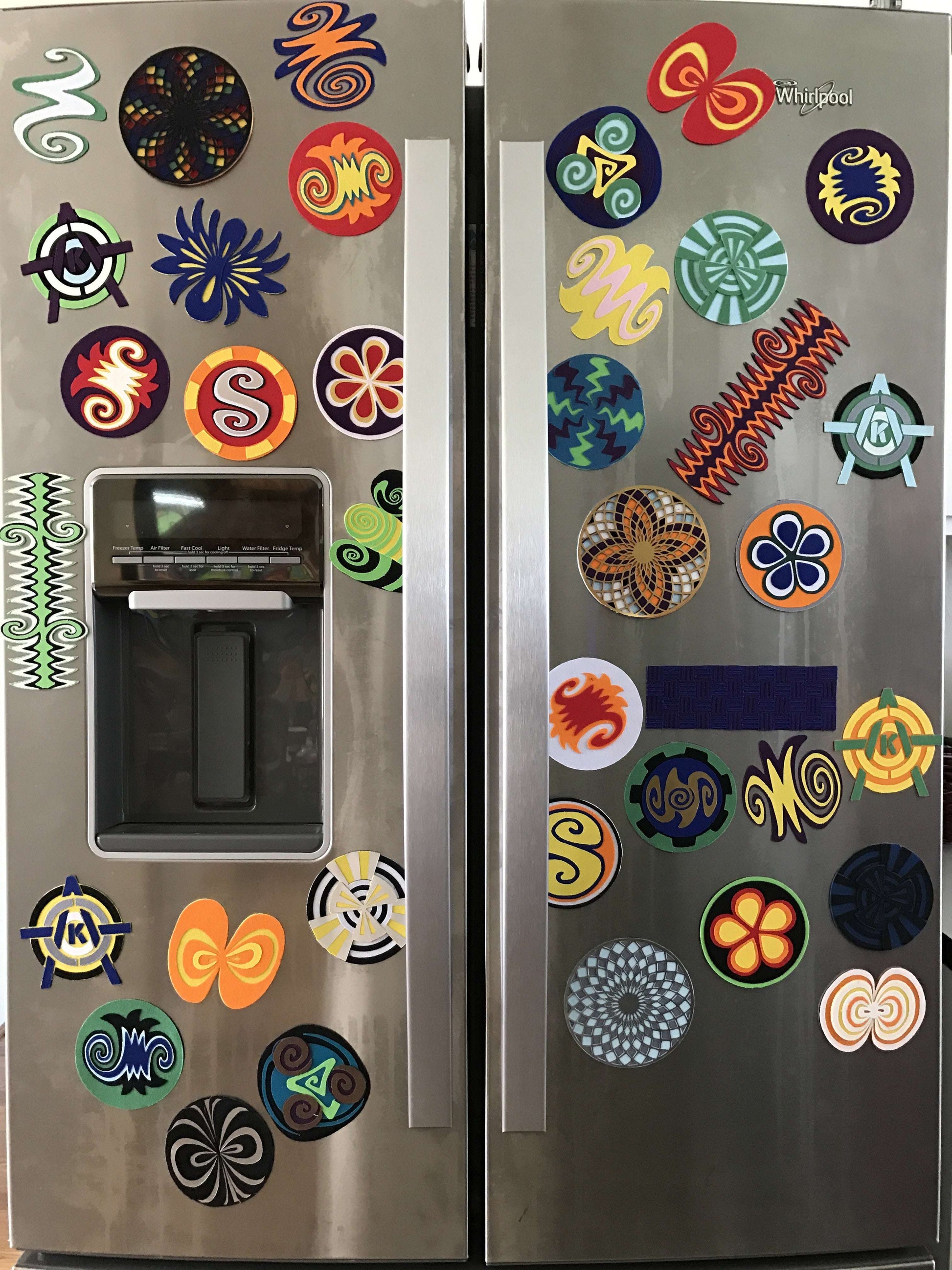 Hand-crafted with heart by a local artisan based here in Eugene, OR, each magnet has multiple layers of cloth to create an incredibly interesting and unique 3D effect. Each unit of purchase is a pack of 10 assorted magnets, each guaranteed to be one-of-a-kind. No two will EVER be the same!
